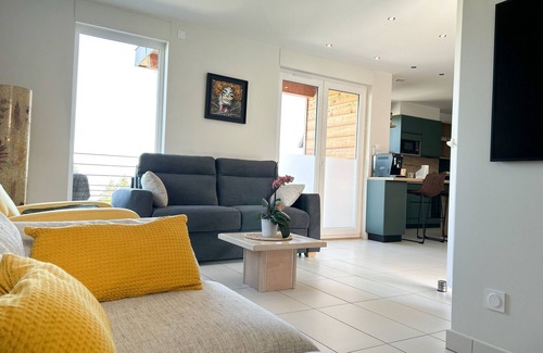This spacious 100 m² house is ideally located near the beaches and the town center of Evian, offering a pleasant and comfortable living environment for up to 6 people.