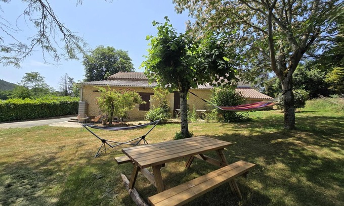 House on the owners' private property, on a 4000m² plot. A kitchen, with induction hob, freezer, microwave, and Tassimo. A living room with TV and sofa bed. A bedroom with a 140x190cm bed and separate toilet. A bathroom with a sink and shower stall. Parking is available on site, and access to a private terrace with a barbecue, hammock, and outdoor dining area on the 500m² private plot in front of the gîte. 3 km from shops, the train station, the river, and the major must-see sites of the Dordogne Valley, this gîte for 2 people offers an ideal location for exploring the Périgord Noir. Its terracotta-hued decor creates a warm and elegant atmosphere. The carefully designed and tastefully landscaped garden extends the charm of the place. The attentive and passionate owners will be delighted to welcome you and share their best local addresses, carefully tested. An ideal location for a romantic getaway, combining discovery and the art of living, 6 km from Belvès and 25 km from Sarlat.