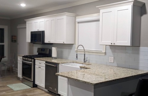 Professionals and their families will enjoy staying at this unique home located in an established, safe neighborhood. It is located inside Loop 323 with easy access to all the amenities of Tyler. There are 3 bedrooms and 2 full bathrooms with a total of 5 beds (1 queen, 4 twins-including a Murphy twin XL). Start your day with a cup of coffee on the front porch and enjoy your evenings watching the game or a movie on the big screen. All the extras have been done with a focus on the details to ensure you have a wonderful stay at The Little Blue House!