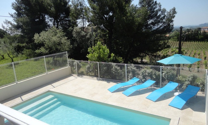 In Châteauneuf-du-Pape, this house has been fully renovated in 2015 (natural stone, external insulation, etc.) in the middle of olive trees. It is ideally located with views of the valley, 5 minutes on foot from the village centre, the wine cellars and the shops and at the edge of the countryside and the Châteauneuf wine-growing region. There is a large living space, 3 bedrooms (sleep 7), a bathroom (separate toilet), a garden, a terrace and a pool. It is close to Avignon, Orange, Vaison-la-Romaine and the Luberon and 1 h from the sea.