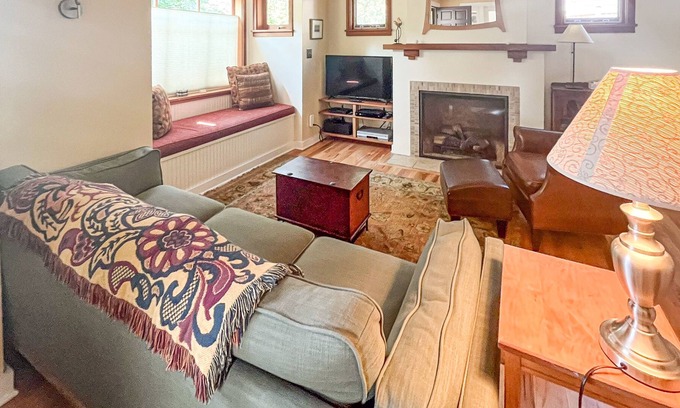 After exciting days out and about, return to your lovely home away from home to relax. The elegant sitting area is furnished with a comfy couch, a window-side bench, and a plush leather chair. Spend the evening curled up in front of the 42" TV and cozy gas fireplace. The musical maestro in your group can serenade your group in a second living area with a beautiful upright piano and plenty of seating between a queen sleeper sofa, armchair, and wooden bench. It's easy to cook and socialize in the updated kitchen, outfitted with stainless steel appliances, plenty of prep space, and a kitchen island. A sunny dining area has seating for your guests, with armchairs just beside the table. To change things up, head outside to a gorgeous private backyard with a patio area, dining table, and a gas grill for sizzling dinner in the sun. The vibrant greenery serves as the perfect backdrop for you and yours as you discuss the next adventure you'll have while you're here!