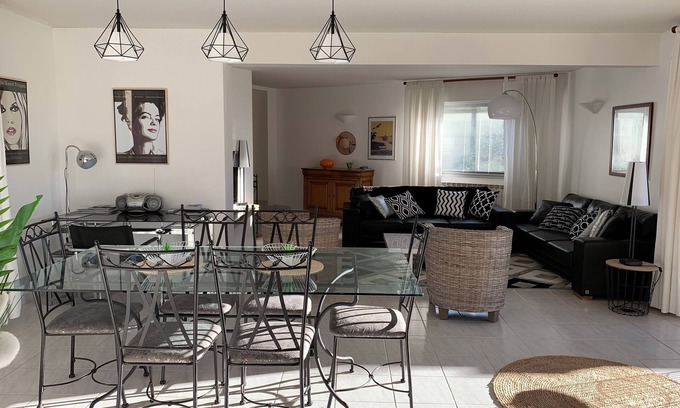 In a very quiet residential area, you will enjoy this charming modern house of 110 square meters, completely renovated, with private courtyards and parking, terrace and large garden of 1000 square meters, for up to 5 people.