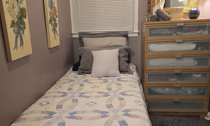 This Wurtsboro house boasts 1 inviting bedroom with a cozy twin bed. The beautiful interior is complemented by heating, AC, and a washer and dryer as well as iron and board for your convenience. It also has an outdoor sitting area along with access to the Wilsey Brook in the backyard. Enjoy a nice stay in this quaint retreat, perfect for solo guests looking for a peaceful getaway. Explore all that Wurtsboro has to offer when you stay at our place. Within walking distance of shops and trails.