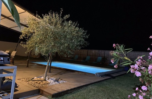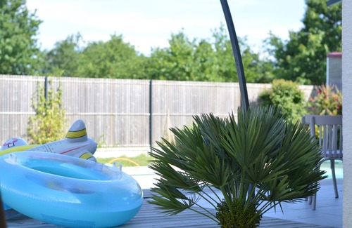 Pool of 3. 5x7m secured by a tarpaulin. You can enjoy grilling (griddle and barbecue) and games for children (a portico and a hut in the garden).