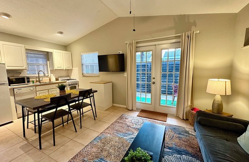 Cozy and spacious independent guesthouse featuring one bedroom, one bathroom, a full kitchen, and a comfortable dining/living area with a sitting sofa. The home accommodates up to 2 guests. Includes a free designated parking space for one car and a private patio, perfect for relaxing and enjoying Florida’s beautiful weather. Pets are welcome with an additional pet fee.