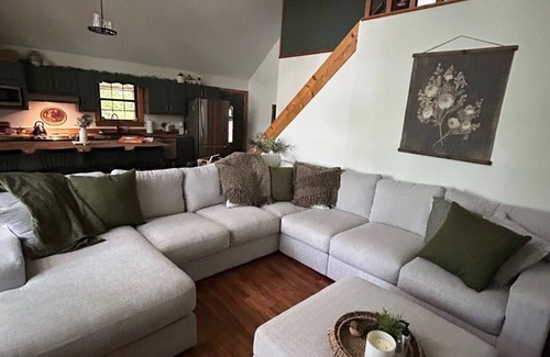 Unwind in Cub Run at this adorable cabin. With 2 bedrooms including king beds and 1 loft with 4 queen beds, this retreat offers a cozy escape for up to 8 people. Enjoy amenities like peaceful lakefront w/water access, proximity to Mammoth Cave National Park and hiking trails, Wi-Fi, AC/heating, washing machine access in unfinished basement. Fully stocked kitchen for cooking in and gas grill provided. Deck faces the water. Screened in porch. The bathroom comes equipped with towels, a hair dryer, and start up basics for your convenience. Smart locks for easy check in and out. We'll be available to answer any questions while you stay at our place. https://secure.smore.com/n/b8fx2