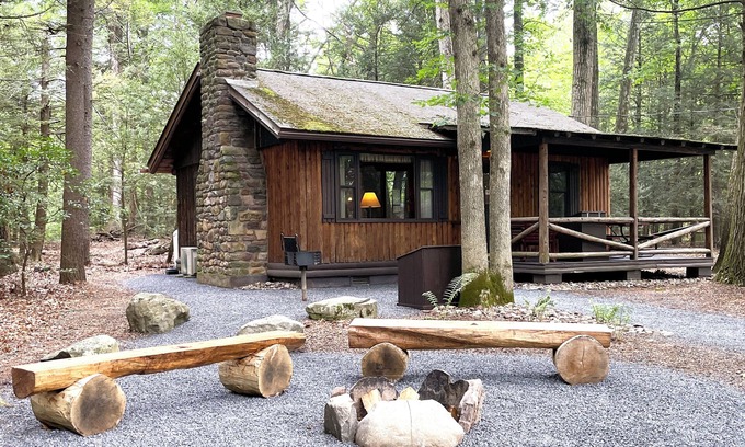 Charming Lake Front Log Cabin with Fire Pit in the Poconos | Cabin in Stroudsburg