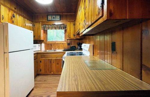 This cedar home with vaulted ceilings and a beautiful stone fireplace (gas fireplace, no wood needed)couldn’t be more peaceful. Enjoy the lake view from your front porch and the lush woods around you. Relax on the sandy beach just outside your door.