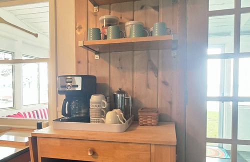 Our kitchen is fully stocked with everything you'll need. A coffee pot, french press and grinder are on hand. The Microwave, toaster oven, griddle and blender will make your stay more comfortable. We provide clean linens and towels. We have a smart tv, wifi, lots of games, puzzles, books and vintage vinyl for hours of entertainment. Our wrap around, three season porch makes an ideal spot for an afternoon nap.
