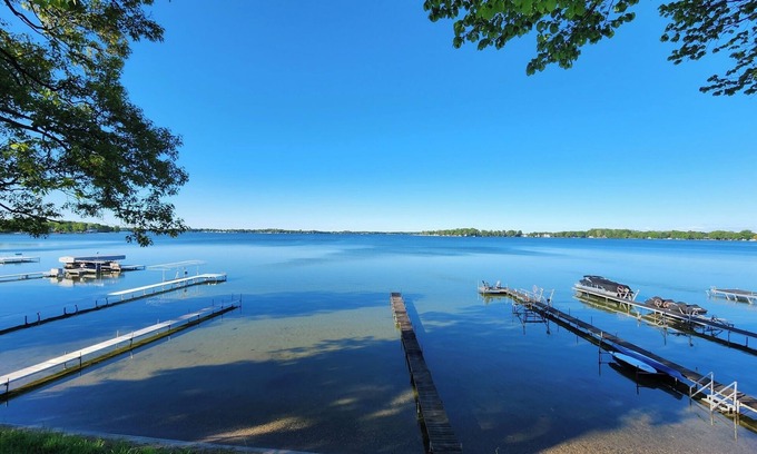Relax with the whole family at our charming cottage. We are located on a private road with a wide-open view of Coldwater Lake, just walk down the stairway and you are there. You may dock your boat at our dock, or local marinas do have boats for rent. Coldwater is the largest lake of 6 on the 17-mile chain of lakes. You can boat, walk, bike, or drive to restaurants and ice cream.