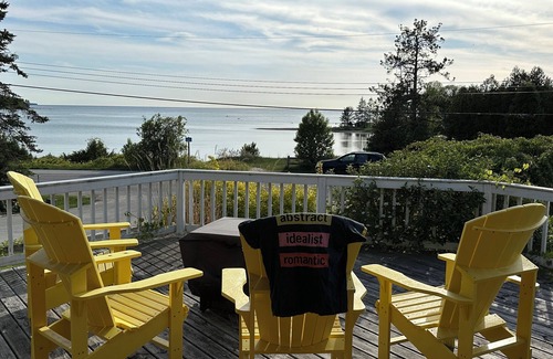 Charming, quaint lakefront cottage on beautiful Miramichi Bay in Port Elgin, Ontario, a 30-second walk across the road to the beach at the Bay. The cottage is also a 5-minute bike ride to the main beaches in Port Elgin and Southampton. During the day, lay on the beach, kayak, SUP and swim. At night, curl up with the family on the expansive deck to watch the amazing sunsets (and if you’re really lucky, the Northern Lights). The cottage also backs on to the Woodland Trail for beautiful hikes and bikes in the woods. Pets welcome! Update Spring 2025: the water levels this Spring look low right now, and with a shallow beach in front of the cottage, guests may have to walk out a bit on the sand to get to deeper swimming and paddling. The swimming and paddling is still great!