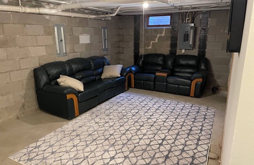 For larger groups or those seeking extra sleeping space, the unfinished basement offers three bunk beds, accommodating an additional six guests. While the basement provides plenty of room for larger parties, please note that it has a rougher, more rustic atmosphere, perfect for those who enjoy a touch of "camp-style" living. This setup is ideal for teens or adventurous spirits looking to embrace a true cabin-in-the-woods experience.