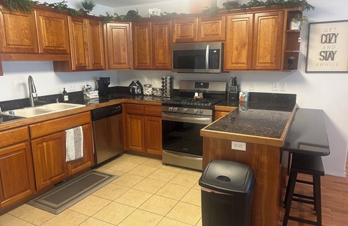 Enjoy a stylish experience! We just opened up this fabulous townhome in February, 2025. With an open floor plan, you and your traveling companions will have ample space to stretch out in comfort. Your place is centrally located— five minutes or less drive to LCSC, Saint Joe’s Hospital, grocery, gas, and restaurants. The garage fits two cars comfortably, with extra parking in the driveway and on the street. The kitchen is stocked with everything you need to make great meals together. Comfy mattresses to ensure a great night's sleep. The Master Bedroom has a King Bed and the second bedroom has two twin beds. Got extra people? No problem! Just fold out the queen sofa for extra guests. Your place has Wifi to stream movies at night, plus a basket of games to enjoy your time together. Relax on the covered deck with a cup of coffee in the morning or a glass of wine at night. The back yard is fenced, and we do allow up to two pets for an additional fee per night. If you're coming with a larger group, check to see if the other side of our townhome is available as well! Welcome to Lewiston!