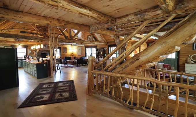 Escape to our enchanting lodge in upstate New York, perfectly situated near the stunning Adirondacks, Cooperstown, Saratoga Race Track, Caroga Lake, and Sacandaga Lake. This spacious retreat is an ideal getaway, offering 4 beautifully appointed bedrooms and 3.5 luxurious bathrooms. The handcrafted lodge is a real piece of art, combining rustic charm with modern comforts.