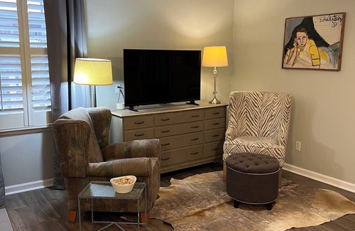Our guest cottage is located behind our home in a unique historic neighborhood adjacent to Rhodes College and Overton Park/ Zoo. Off-street, covered parking with additional security of an automatic iron gate is provided. We have a large gunite pool that is open in the summer months. Our cottage is equipped with a full kitchen featuring custom cabinets and new appliances. Customary laundry services are provided for sheets and towels weekly. Laundry drop-off/pick-up options are nearby with reasonable rates. Running or walking trails are near (Overton Park/ Greenline) for those who enjoy outdoor fitness activities: pharmacies, grocery stores, eclectic gift shops, art galleries, museums, and multiple restaurants fill the mid-town scene. Memphis loves music! You can explore historic landmarks like Sun Studio, Graceland, and Stax... or check out live music at The Overton Park Shell or Lafayette's Music Room. There is a movie theater in nearby Overton Square, as well as several venues for plays. Memphis has a variety of great restaurants. We can suggest our favorites, including our favorite places for Memphis BBQ... but BBQ gets pretty personal here. The Memphis Medical Center is nearby, including St. Jude Children's Research Hospital (which provides free tours with reservations). We love our neighborhood and hope that we can fit your specifc travel needs!