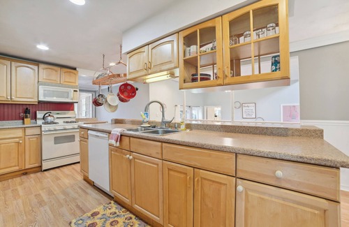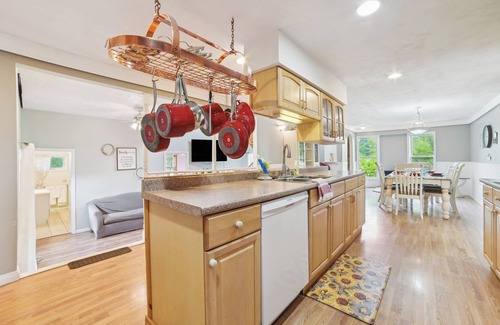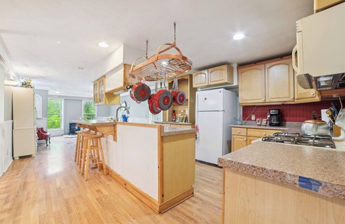KITCHEN: Dishwasher, fridge, oven, 4-burner stovetop, microwave, breakfast bar w/ seating, blender, Crockpot, drip coffee maker, tea kettle, toaster, cooking basics, dishware & flatware