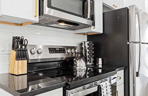 ✔ Fully Equipped Kitchen – Stocked with cookware, dishes, wine glasses, a coffee maker, and all the essentials you need to cook at home