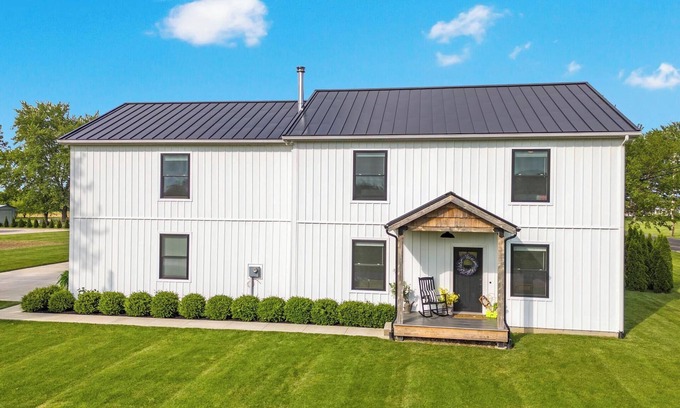 Welcome to The Amity Farmhouse, a stunning home that beautifully combines timeless elegance with modern convenience. Located just outside Dublin, OH, this meticulously renovated 4-bedroom, 3.5-bath property on 2 acres is a true gem, offering the ideal escape for families and friends seeking both comfort and style.