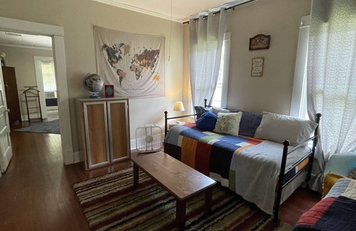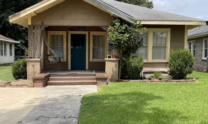 This is a traditional older home in the Monroe Garden District. It has old wood floors, the southern style pass through rooms, and a great back yard for relaxing. Bookings are not accepted after 7PM and check in is between 3PM and 10PM. Pets are NOT allowed.
