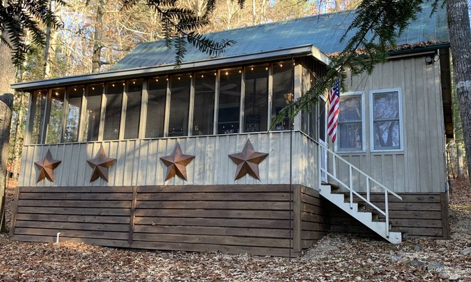 Our rustic cabin is located in a peaceful, airy setting! It has front and back screened porches for additional living/dining space. And brand new central HVAC! Recently updated, this cabin has all of the creature comforts you need while enjoying nature and the laid-back mountain life. The WiFi is strong for streaming and WiFi calling. Surrounded by lovely mountains, this cabin has a relatively flat lot.