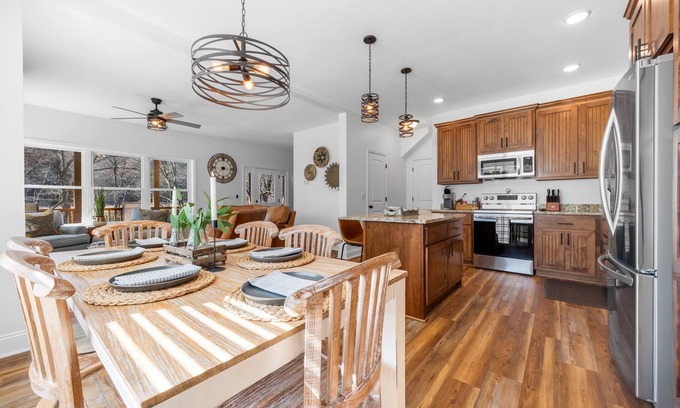 Kick back and relax at this cozy 3-bedroom, 2.5-bathroom retreat located on the Hiwassee River! Boasting a deck that overlooks the river, a gas grill, and a well-appointed kitchen for home-cooked meals, this idyllic abode will serve as the perfect spot for a rejuvenating retreat. Venture out to hike the Piney Knob Trail System or try your luck at the Harrah’s Cherokee Valley River Casino. Return home to enjoy the sounds of the flowing river while sharing drinks with friends around the fire pit.