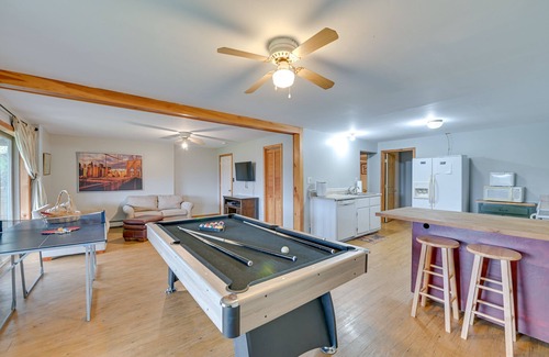 Hit Windham Mountain Club’s slopes or laugh down the waterslides at Zoom Flume Water Park when you escape to this inviting Preston-Potter Hollow home. With 3 bedrooms, 2 bonus sleeping rooms, and 3 bathrooms, this spacious and secluded vacation rental offers the perfect getaway for families. Enjoy an exciting match of pool or ping pong in the game room, soak in the private hot tub, or gaze at stunning mountain views from the expansive deck. This home has everything you need for a memorable stay!