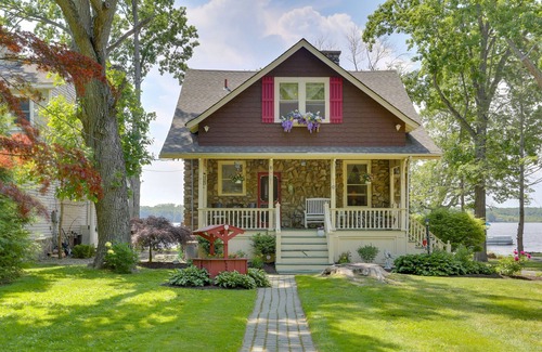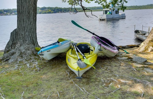 Escape the city and discover your new favorite home away from home at this 4-bed, 1-bath vacation rental on Orange Lake. Situated in New York's Hudson Valley, the home not only features easy access to outdoor recreation and sightseeing, but on-site fun, too. Take the kayaks out for a spin, splash in the freshwater, or play cornhole on the lakefront lawn. When evening falls, admire breathtaking sunsets over dinner on the porch or s'mores around the fire pit. A relaxing, nostalgic stay awaits.