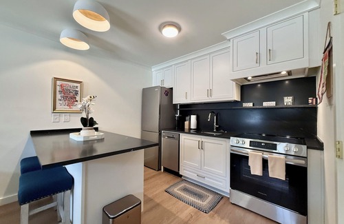 The bedroom is designed for comfort, with queen-size bed and premium mattress, quality linens, and multiple pillow options for a great night’s sleep, as well as a beautiful en-suite bathroom with full walk-in shower.