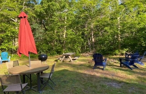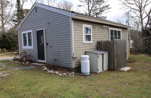 Find tranquility in this newly renovated single level cottage. The family room, dining, and kitchen offer a bright space compliments of the adjacent new sliding glass door. The living room has a 30" flat screen TV, pull out queen sleeper sofa, and is the location of the mini split for both heat and AC. The cottage has two bedrooms, one with a queen bed and the other with a full bed. There is one bathroom with a tub. Enjoy the outdoor space, charcoal grill, and outdoor shower. Drape salty towels and swim suits on the clothesline. Wellfleet center, the harbor, restaurants, galleries, and shops are just a short distance away as well as many fresh water ponds and ocean beaches. Enjoy golf, live theater, biking along the Cape Cod Rail Trail, and exploring the Cape Cod National Seashore all minutes away. The cottage backs onto the Fox Island conservation area with a lovely hiking and mountain bike trails down to Black Fish Creek. 3 night minimums available off season with an added cleaning fee. Save the cleaning fee by booking 7 or more consecutive nights! BOOK NOW! An administrative fee and applicable taxes may apply. Linens not provided. Guests may rent linens or bring their own.