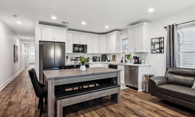 Stunning, spacious + New and modern 3 bd | 2 ba Duplex located in the heart of NOLA. New stainless steel appliances, immaculate showers, spacious interior family-friendly games, and lots of space make this spot, the place to be!