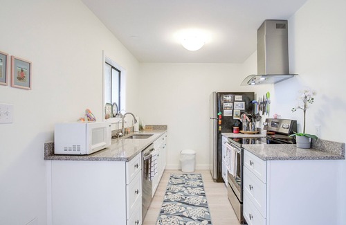 KITCHEN: Fridge, stove, dishwasher, drip coffee maker (coffee not provided), microwave, cooking basics, dishware/flatware, trash bags/paper towels