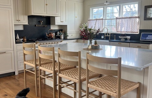 Your summer retreat close to the beach and train in Old Greenwich with 5 bedrooms. Each room offers a unique sleeping arrangement, ensuring a comfortable stay for all guests. This charming house features a Peloton bike and treadmill, perfect for staying active during your visit. The soothing bathrooms are equipped with a hairdryer, bathtub, and shower. A beautiful office space with a full bed and pocket doors provides a quiet retreat for work or relaxation. We look forward to hosting you at our place.