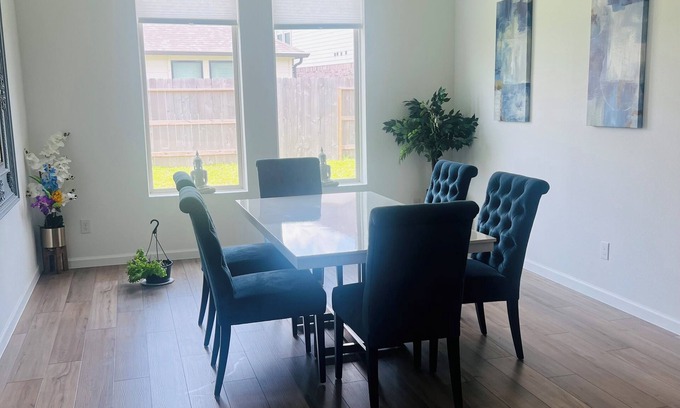 Located in Texas City, this charming house offers 3 bedrooms with a king, queen, and full bed. The 2 bathrooms are equipped with a bathtub and shower, along with other essential amenities. Guests can enjoy the convenience of a washing machine, hair dryer, AC, heating, and WiFi during their stay. Enjoy your time in Texas City at our delightful house.