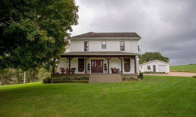 Our early 1900s farmhouse retains the charm of a country home but has been updated with all the modern amenities. The 2 story home sits on 5 acres in an ideal location between Springfield & Branson, MO. We provide farm-fresh eggs, our signature muffin mix and coffee. You'll feel at home in the country but you're just 5 mins from shops, restaurants, and Finley Farms, 20 mins to BassPro and 30 mins to Branson. This is a great place for a family weekend, couples night away, or girls trip.