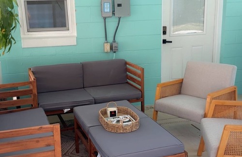 This 1 bed apartment is perfect for your escape to Port Orange. Located only 2.5 miles to the beach this poolside apartment has everything needed to enjoy a beachy retreat as if it were your own home! The bedroom features a delightful king bed, beautiful bathroom with waterfall shower head, 50 in Roku tv. Attached you have a full kitchen with stove top, mini oven, and everything needed to cook a meal. This unit also has laundry making this a full apartment. Bonus is a large front porch just steps from the pool. Also included are amenities like WiFi, AC, and plenty of parking. Guests can relax and unwind by taking a walk through the beautiful neighborhood- you’ll find SugarMill botanical gardens- a peaceful garden with trails and beautiful history of this land and the sugarmill ruins. We think our place will help you experience everything Port Orange has to offer being 5 minutes to the beach, 3 minutes to shopping and plenty of Resturaunts, only 15 minutes to both Daytona Beach and New Smyrna Beach it’s a perfect spot to explore!