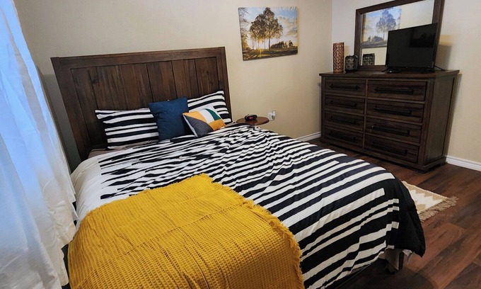 This Wichita Falls house boasts 3 inviting bedrooms, each with a cozy queen bed. The peaceful ambiance of this home is perfect for guests looking to unwind and relax. With amenities like AC, WiFi, and a washing machine, your stay will be enjoyable and stress-free. A great place to call homebase while you're away, we hope you enjoy your stay.