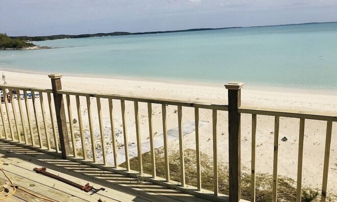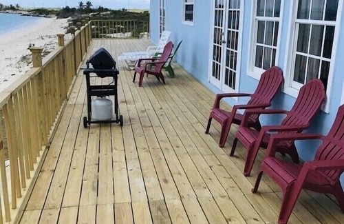 The home is situated in the Capital settlement of Cat island, the Settlement of New Bight. It is located at Fountain Bay, a separate Island in New Bight. It sits on the most beautiful, picturesque beach in New Bight. It is an extremely tranquil, and excluded spot and the ideal place to get away!! It is on the second story of the home. The front yard is the beach. There is a Miranda all around the home, so one can view the sun rise and sun set. You may also view the very blue waters of the beach from the entire southeast section of the home. It is the perfect honeymoon suite and a fabulous family get away!