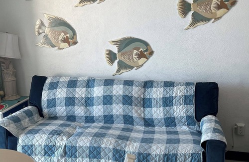 This serene resort in Daytona Beach offers a cozy bedroom with a king bed and a lovely living room with a sofa bed. Imagine waking up to the sound of waves crashing and enjoying a cup of coffee on the balcony. With AC, heating, and WiFi, guests can stay connected and comfortable throughout their stay. The bathroom features a relaxing bathtub for unwinding after a day of exploring. Make your holiday one for the books with a stay at our place.