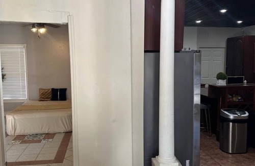 You'll find amenities like barbecue pit, acreage for sports court and bird watching, basketball court, pond, swimming pool/hottub (reservation only) washing machine, central heating, air conditioner, and fast StarlinkWiFi to make your stay comfortable. Plus, there's gym equipments for those looking to stay active during their trip. Our place will help you feel at home while you're traveling. self contained unit, overlooking the pool on one side and pond on the other side..