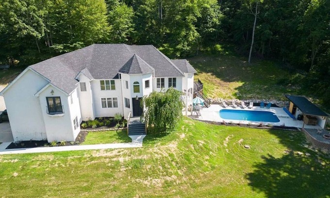 Tons of natural light coming in through the multitude of panels and 6x french doors for entry and exit make this home bright and sunny. Air conditioner and central heating are some of the great features of this awesome mansion. The property is located just 3mins from highway 35 and driving distance from Columbus airport, zoo, beach and Chilicothe parks…The experience can also include optional airport pickup add-on or luxury car hire. Send us a direct message for more info or discounted reservations for any of these additional items we offer: a) common area has reception equipped office space for conference calls and meetings or work related activities with high speed internet and vending machines for food and drinks 1) luxury car reservation requests (Jeep, Tesla, others) or airport pickup discounted fees. 2) EV charging, laundrette and car wash. 3) full or part catering for events 4) Storage space for lease 5) Paid Parking for various vehicles such as cars, boats, RVs & more (2 vehicles parking included in reservation) 6) GLOC Campinn reservation's... we are doing some renovations. There is 4+ acres of natural woodland for nature tour and camping activities (contact us directly for camp reservations, cabins coming soon...). A few miles from the property you will see some horses, chickens, cows & more..Escape the daily grind and have a real relaxing retreat over the weekend
