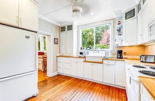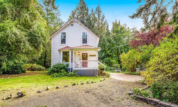 This beautifully restored turn-of-the-century farmhouse is perfect for your next Olympic Peninsula vacation, whether you're looking for a romantic couple's getaway or family fun with the dogs. Inside, old-country charm has been lovingly restored with modern amenities. Spend your days relaxing on the back porch or playing a lawn game in the expansive yard. On the back side of the home, explore the creek or enjoy the fruit trees and pick some berries.