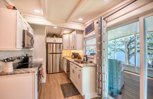 This 1,040-square-foot, recently remodeled gem offers two bedrooms and two bathrooms. Nestled on the river, it provides a secluded escape. The property boasts three semi-private boat docks, shared exclusively with guests, offering panoramic views.