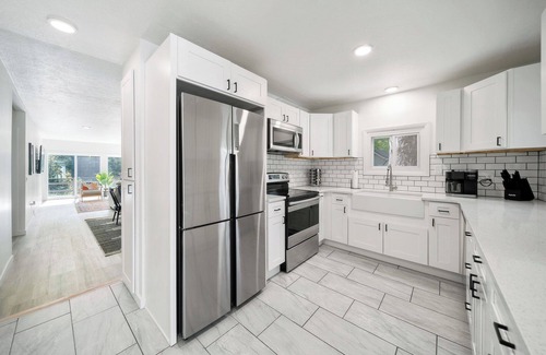 Inside, you'll find a fully equipped kitchen, spacious dining for 8, 3 comfortable bedrooms, and 2 modern bathrooms. Outside, relax on the deck with a grill and fire pit, or take advantage of the kayaks provided for your enjoyment.