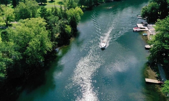 60 minutes from GTA. Best location to dock your boat on Trent Severn Waterway and Sparrow Lake. Large balcony overlooking the river. Porch with propane BBQ grill. Outdoor pool in common areas is under renovation. 4 bedrooms with 2 bathrooms. 1 bedroom and 1 barrier-free bathroom on ground floor. 3 bedrooms, 1 bathroom and laundry upstairs. 2 parking spaces by the cottage. More visitor parking spaces in 5 minutes walking distance. Nearby boat and canoe rentals.