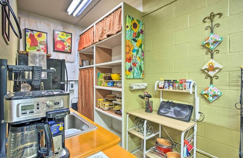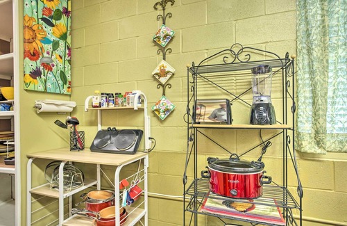 KITCHENETTE: 2-burner hot plate, toaster, blender, dual coffee maker (drip & K-cups), Crock-Pot, cooking basics, dishware & flatware