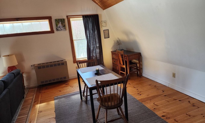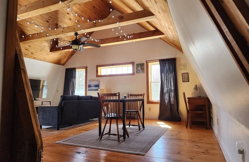 Welcome to our charming rustic loft nestled near Lake Salem in the beautiful Northeast Kingdom! Embrace the tranquility of nature while enjoying modern comforts in this cozy retreat. With exposed wooden beams and panoramic views of the surrounding forest, our loft offers a truly enchanting escape. Spend your days hiking through the nearby trails, kayaking on the lake, or simply unwinding on the private balcony with a cup of locally brewed coffee.