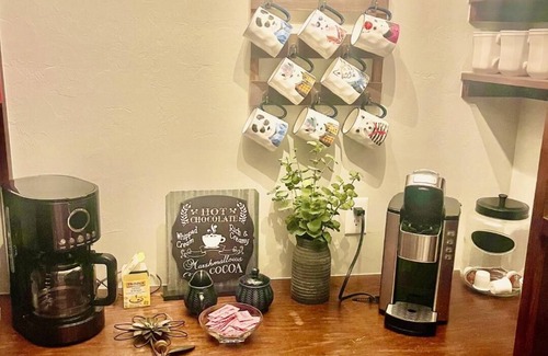 This cute hidden treasure features a coffee bar in the corner for your coffee and tea lovers.