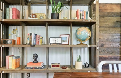 The interior of the home was intentionally designed with retro furnishings, eclectic decor, and wood finishes mixed with bold statements throughout. Quality furniture, appliances, bedding, and towels will ensure a comfortable home away from home. Extra perks include the Sonos surround sound speakers, complimentary local coffee beans, and separate room for a dedicated workspace.