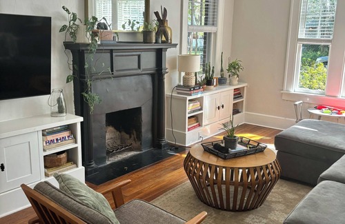This two story historic 1930s brick home offers a peaceful stay for guests, in one of Savannah's most sought after neighborhoods. There are 3 bedrooms including a king, full, and twin, 2 full bathrooms with tubs, and one half bath. There is another private room/office - in which a queen air mattress (provided) could fit. Large kitchen, dining room, and living room with TV. Quiet midtown neighborhood on such a charming block, 5 minute drive or 10 minute bike ride downtown. Very close to the Starland District. Back deck with seating and fully fenced in yard. Quick walk to Daffin Park and the Savannah Bananas games!