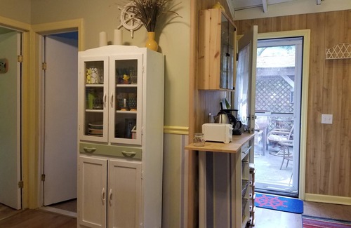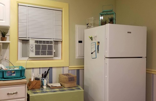 The cottage features two bedrooms, open kitchen with dining room, and living area with smart TV and a queen sofa bed. It has nice comfortable furniture and beach style décor, fully equipped kitchen, full bath and additional covered outdoor shower, private WiFi access, and air-conditioning. Nice fenced backyard is perfect for quiet dining and lounging. The cottage can park up to 3 cars.